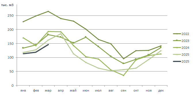 Статистика поставок древесины в Китай 2022 - март 2026 г.